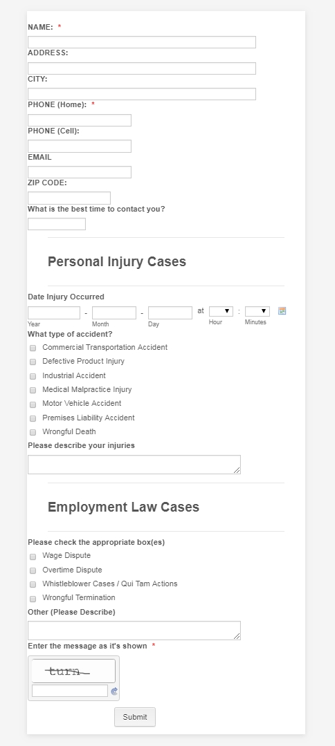 Claremont Personal Injury Law Firm Case Evaluation Form